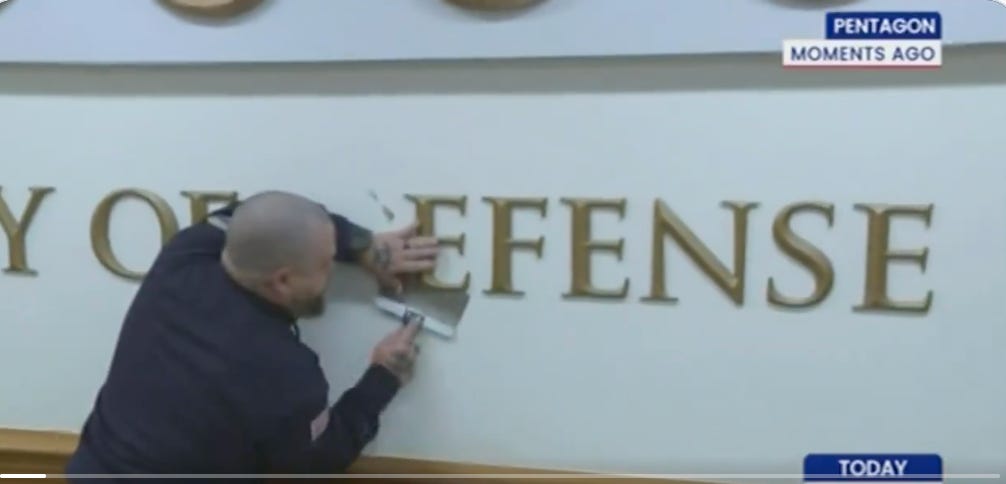 The Department of Defense is changed to the “Department of War,” though this is illegal and requires and act of Congress.