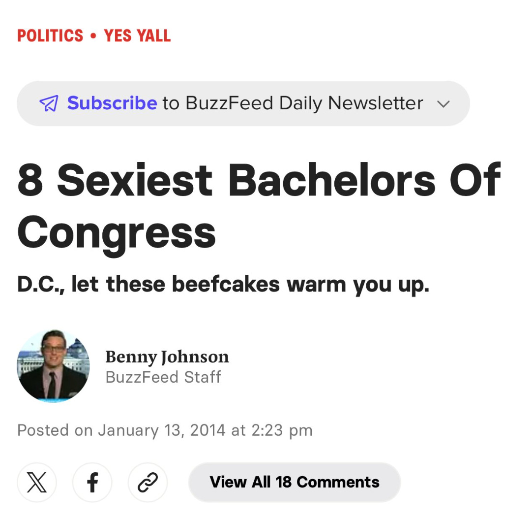 Progressive podcaster Keith Edwards pointed to several things a few months ago, including queer novelist Saeed Jones remarking that he “made out” with Johnson—in a closet!—at a Christmas party when they both worked at BuzzFeed in the 2010s (before Johnson went full-blown MAGA), something Jones said, “haunts me to this day.” Jones wrote on social media, “I’m definitely not the only man Benny Johnson has made out with,” and that “men will literally become traitors to their country rather than go to therapy.”