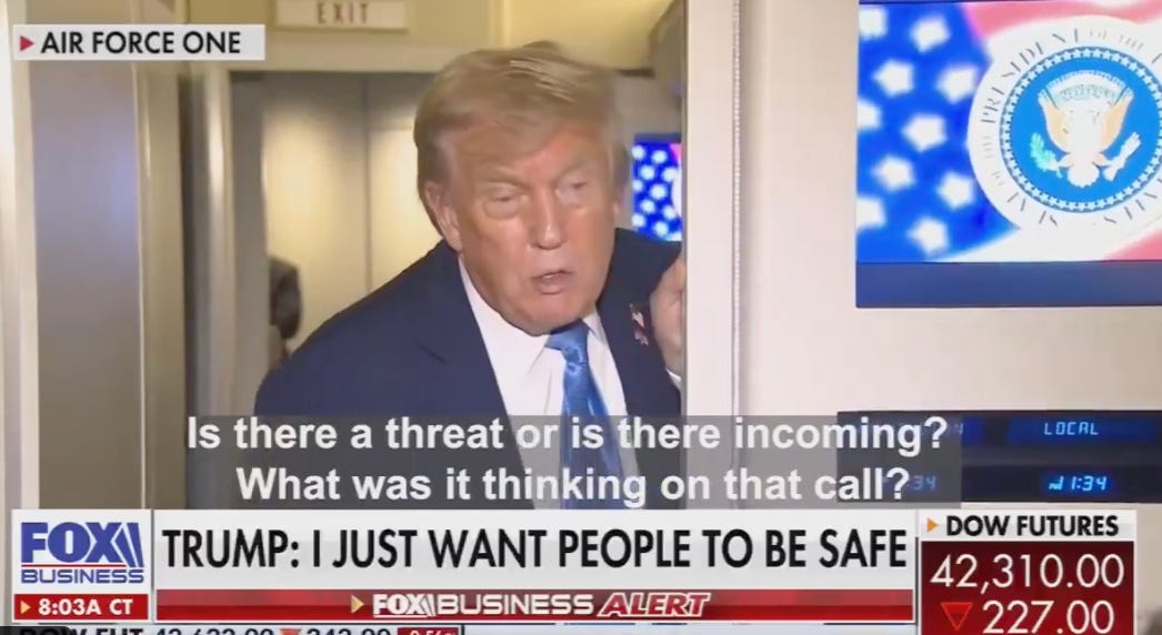 Will Trump chicken out again, caving to hard-core MAGA, making it appear like it was a bluff—as he did on tariffs? Probably. Maybe. Or will he cave to the hawks? Probably. Maybe. Who knows?