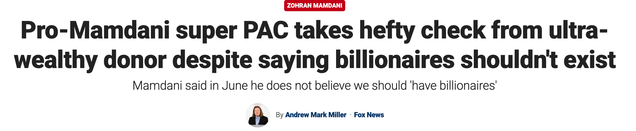 One melodramatic attack on FoxNews.com points to how a super PAC supporting Mamdani received a $250,000 donation from a liberal philanthropist, framing it as some sort of a revelatory example of hypocrisy that should upend the race immediately.