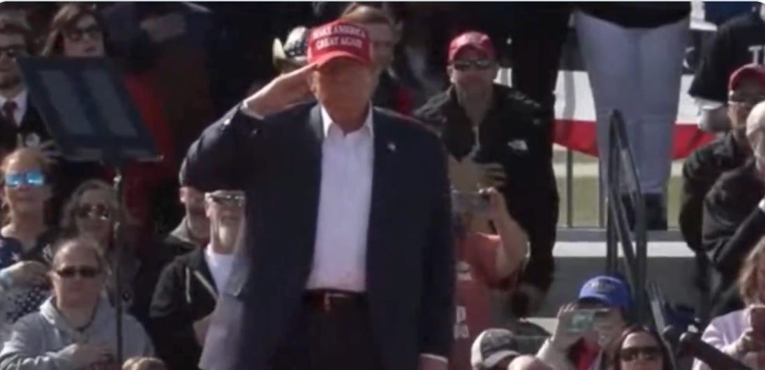 As the Associated Press wrote in covering the Ohio rally, “Trump is making the Jan. 6 attack a cornerstone of his bid for the White House.” Trump, who saw President Biden’s stirring and energetic State of the Union address, which opened with Biden comparing his urgent message about Trump to FDR’s warnings to the American people about the threat of fascism in 1941, began his rally with a grotesque salute to the January 6th insurrectionists.