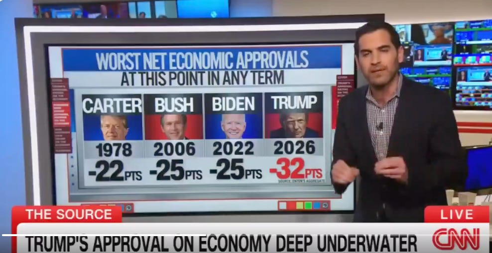 The numbers just keep coming in, and we may have reached the tipping point: Trump is at an all-time low of any president on the economy in over 50 years, including two of his whipping posts, Jimmy Carter and Joe Biden. It’s weighing down Republicans, as Americans see Democrats as better on the economy than Republicans for the first time since 2010. The GOP has benched the so-called “Save America” Act, meant to suppress voting, as there’s no way to pass it in the Senate, and their redistricting war is blowing up in their faces.