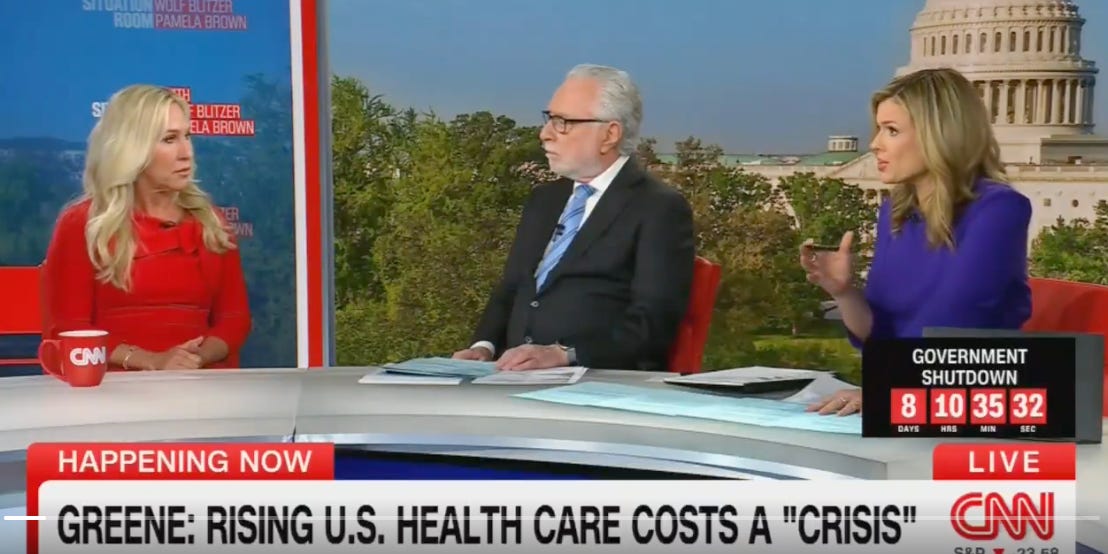 Donald Trump has now ordered mass firings of federal workers in an effort to force Democrats to cave on the shutdown. Yet it has only emboldened Democrats further as House Speaker Mike Johnson got scorched by voters on C-SPAN and expressed the GOP fears of next week’s No Kings protests by calling them “hate America” rallies. But even Marjorie Taylor Greene, one of the most rabid right-wing forces in the House, is now calling for ending the shutdown and extending Obamacare subsidies, showing Republicans are in disarray as Democrats are unified.