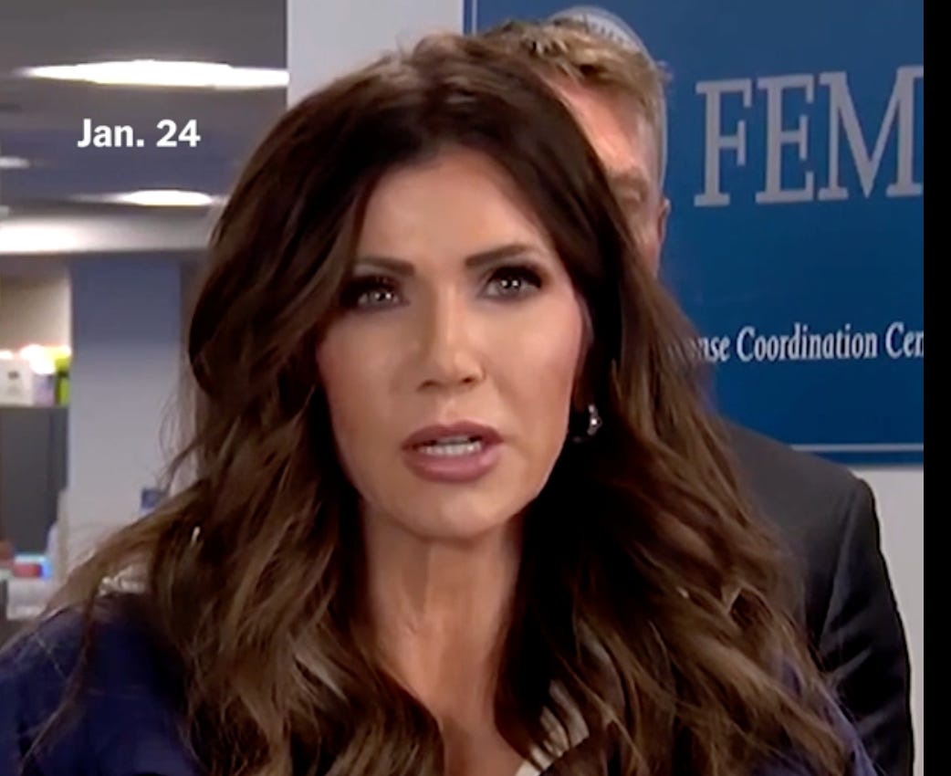 As investigative journalist Marcy Wheeler reports, by lying about Pretti and calling him a “domestic terrorist,” Noem is a co-conspirator. So are Bovino and Stephen Miller. They’ve covered up and interfered in a state investigation. They should not only be fired—or, in the case of Noem, impeached, as some Democrats are calling for. They should be charged with crimes.